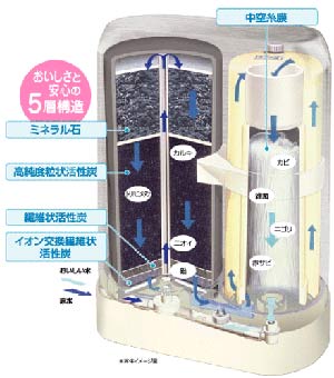 大容量ろ過層が11000リットルの水を浄化。有害物質を徹底除去。